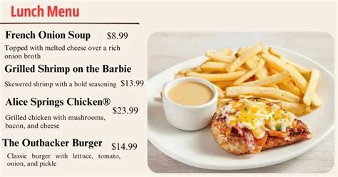 Outbacks Lunch Menu. Web outback steakhouse has a specialization in seafood, steaks, chicken, ribs, and pasta. Web the outback steakhouse lunch menu starts at $6.59 to $11.59, and some of the different items are bowl (steak), bowl (carnitas), etc.